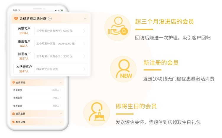 美容院会员软件实现会员签标画像,智能分群,精准营销触达,促活/留存/复购