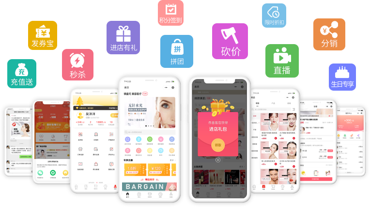 瓜分券、拼团、砍价、二级分销、股东分红…