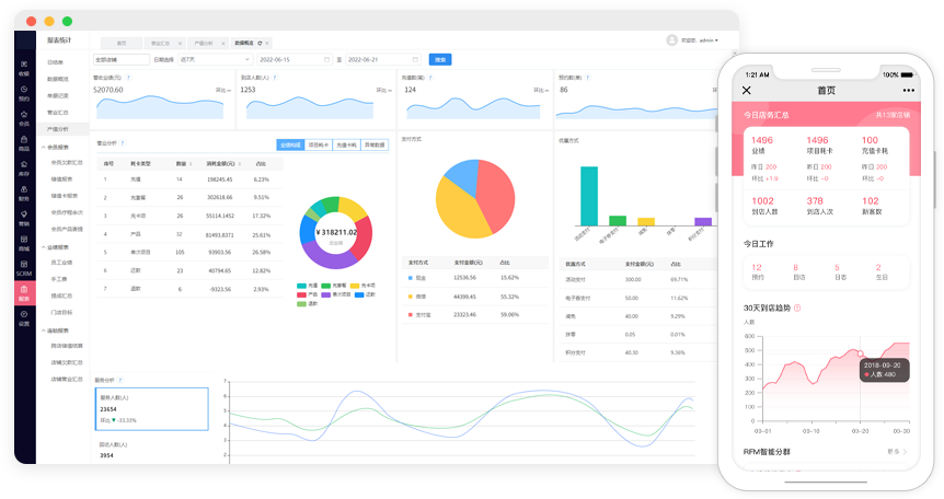 收银、会员、预约、提成统计、经营分析等数智化协同,提效降本业绩倍增