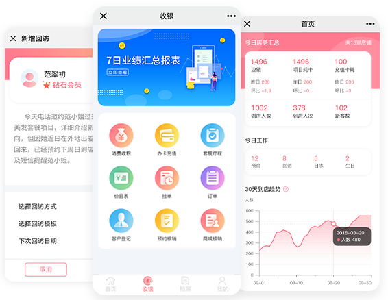 扫码快速收银,微信在线预约,员工提成自动统计