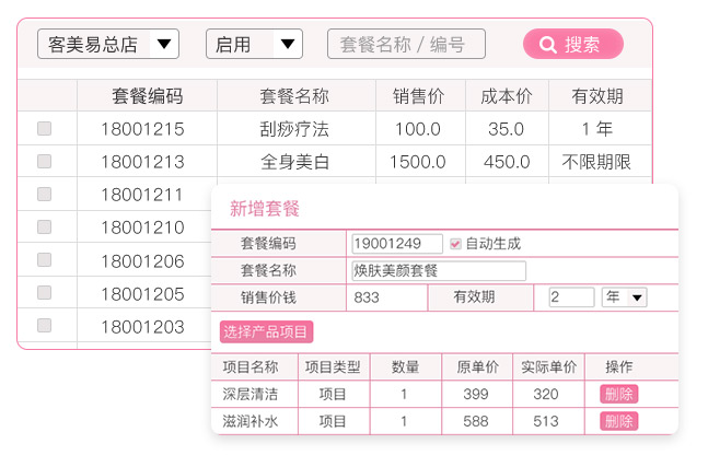 项目疗程 | 服务套餐 | 商品调拨 | 库存补给