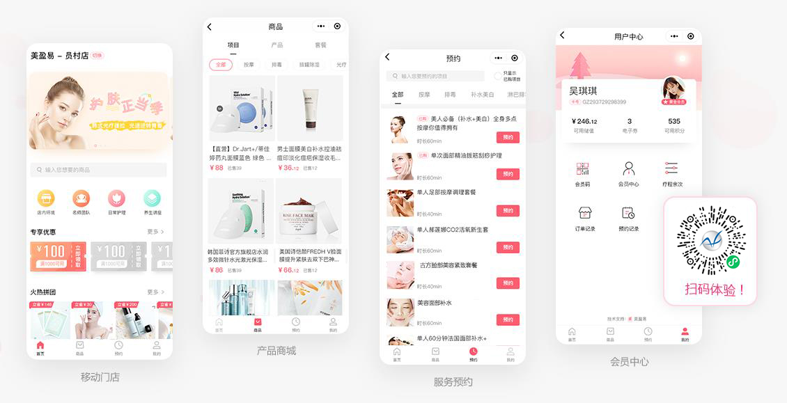 美容店软件主要由店务管理、拓客营销、私域运营三大核心应用组成。一方面通过构建数字化、规范化业务流程管理,全面提升内外协同效率,降低经营成本;另一方面通过提供多种高效实用的拓客营销工具及基于企微生态的私域运营scrm,帮助门店更好地拓客、锁客、留客、升客,快速提升业绩及盈利能力。
